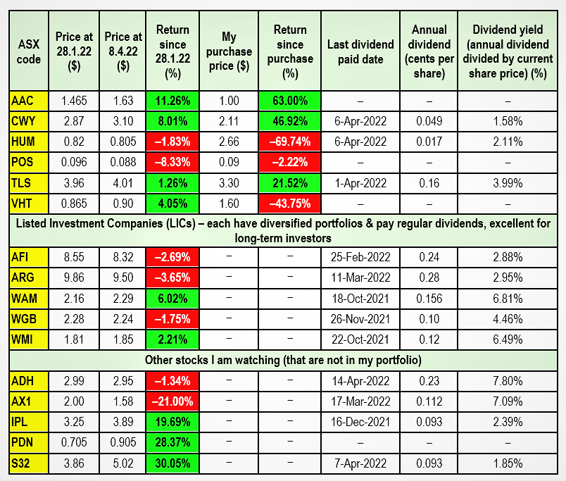 - CWY: Continues to grow with a small dividend. Their half yearly results were released on 17 February 2022.