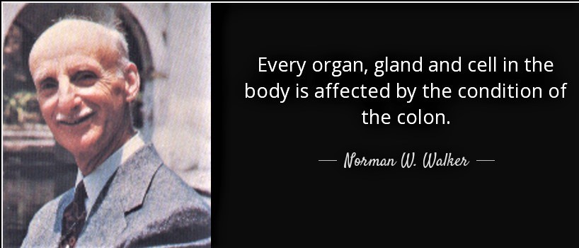 “The best of diets can be no better than the very worst if the sewage system of the colon is clogged with a collection of waste. … or can I dare describe it as … ‘impacted faecal matter.’ ” (my emphasis)