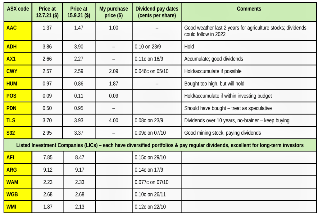 Thankfully, Australian banks have recovered from the millions they paid in compensation and fines as a result of the recent Royal Commission, and the shock of the pandemic. I’m glad to report that dividends this September are (almost) back to normal!